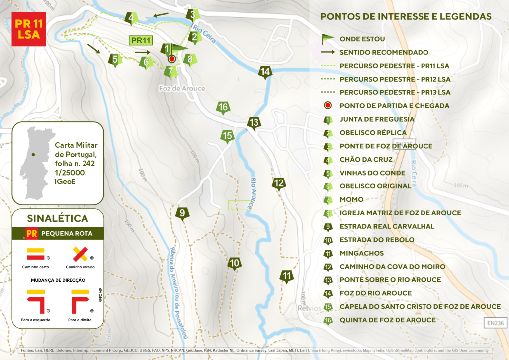 O percurso, com cerca de 2Km de extensão, tem início na Junta de Freguesia, a 100 metros da réplica do Obelisco que homenageia os heróis que serviram na Guerra Peninsular na terceira Invasão Francesa em 1811, seguindo em direção à Ponte de Foz de Arouce, uma das mais antigas pontes medievais existentes na região Centro. O percurso prossegue pela esquerda, onde se encontra o Chão da Cruz, local onde se desencadeou a batalha das invasões francesas, nomeadamente o combate de Foz de Arouce de 1811, sendo realizada anualmente neste local a reconstituição da Batalha.